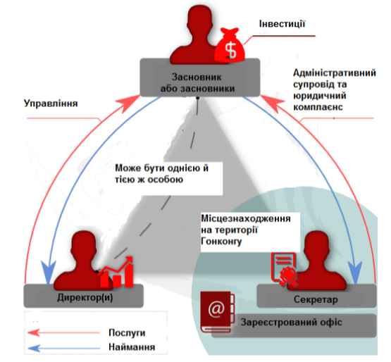 Відмітимо, що вимагається наявність як мінімум однієї фізичної особи, яка виступатиме в якості директора, а також секретаря – резидента Гонконгу. Директори та акціонери можуть бути громадянами інших держав, а директором і акціонером може бути одна й та сама особа, однак заборонено суміщати функції директора та секретаря.Обов’язковим є щорічне проведення аудиту бухгалтерської звітності компанії сертифікованим аудитором за результатами фінансового року.